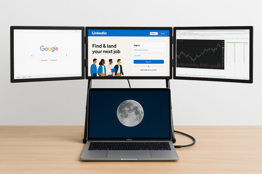 TriScreen Pro™ | Driedubbele Monitor Uitbreiding voor Laptop | Innovatieve Triple Screen Setup voor Multitasken en Thuiswerken