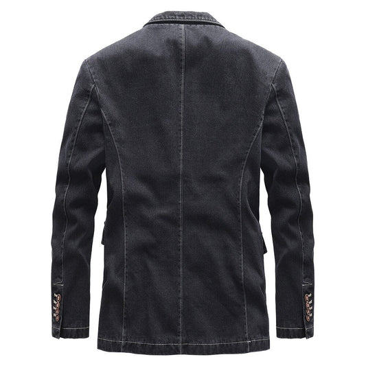 Damian™ | Heren Denim Blazer Met Dubbele Knoopsluiting En Printvoering | Casual Colbert In Gewassen Zwart Met Retro Details