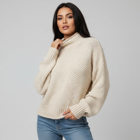 Théa | Geribde Trui Met Opstaande Kraag En Oversized Pasvorm Dames