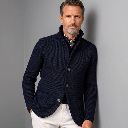 Samuel | Ribgebreide Herentrui met Knopen en Suède Details