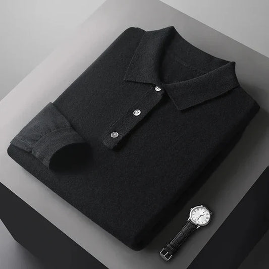 Lucas™ | Heren Gebreide Kasjmier Polo met Lange Mouwen | Luxe Fijngebreide Smart Casual Knitwear