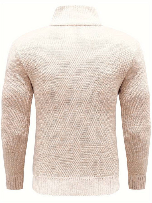 Arlo™ | Kabelgebreide Kasjmier Wollen Herentrui Met Halve Rits En Opstaande Kraag