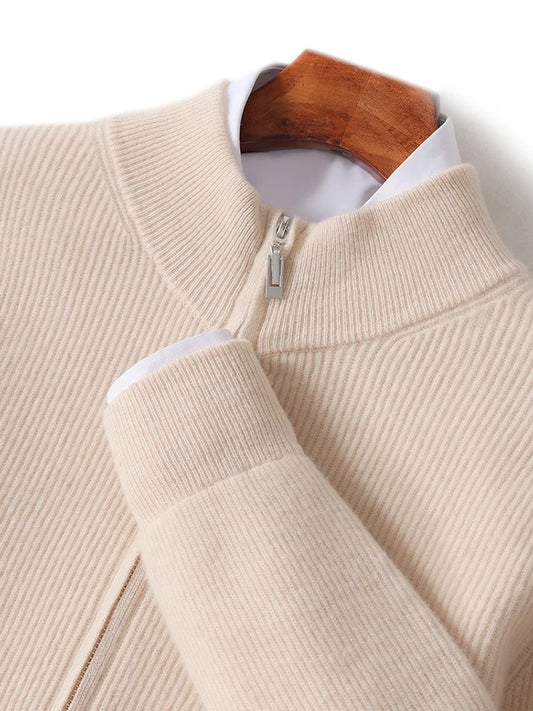 Xavier™ | Heren Merinowol Kasjmier Vest | Luxe Ribbel Gebreid Wollen Vest met Rits