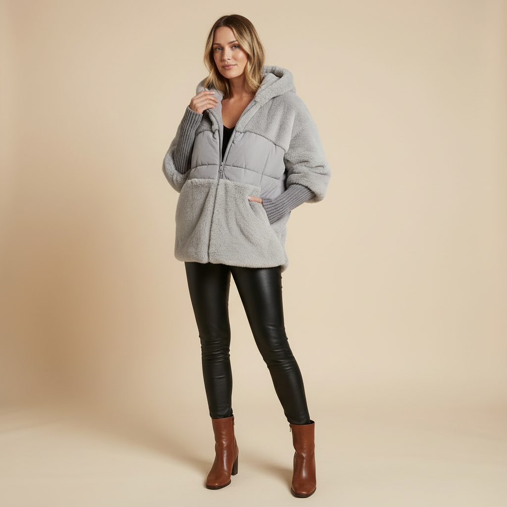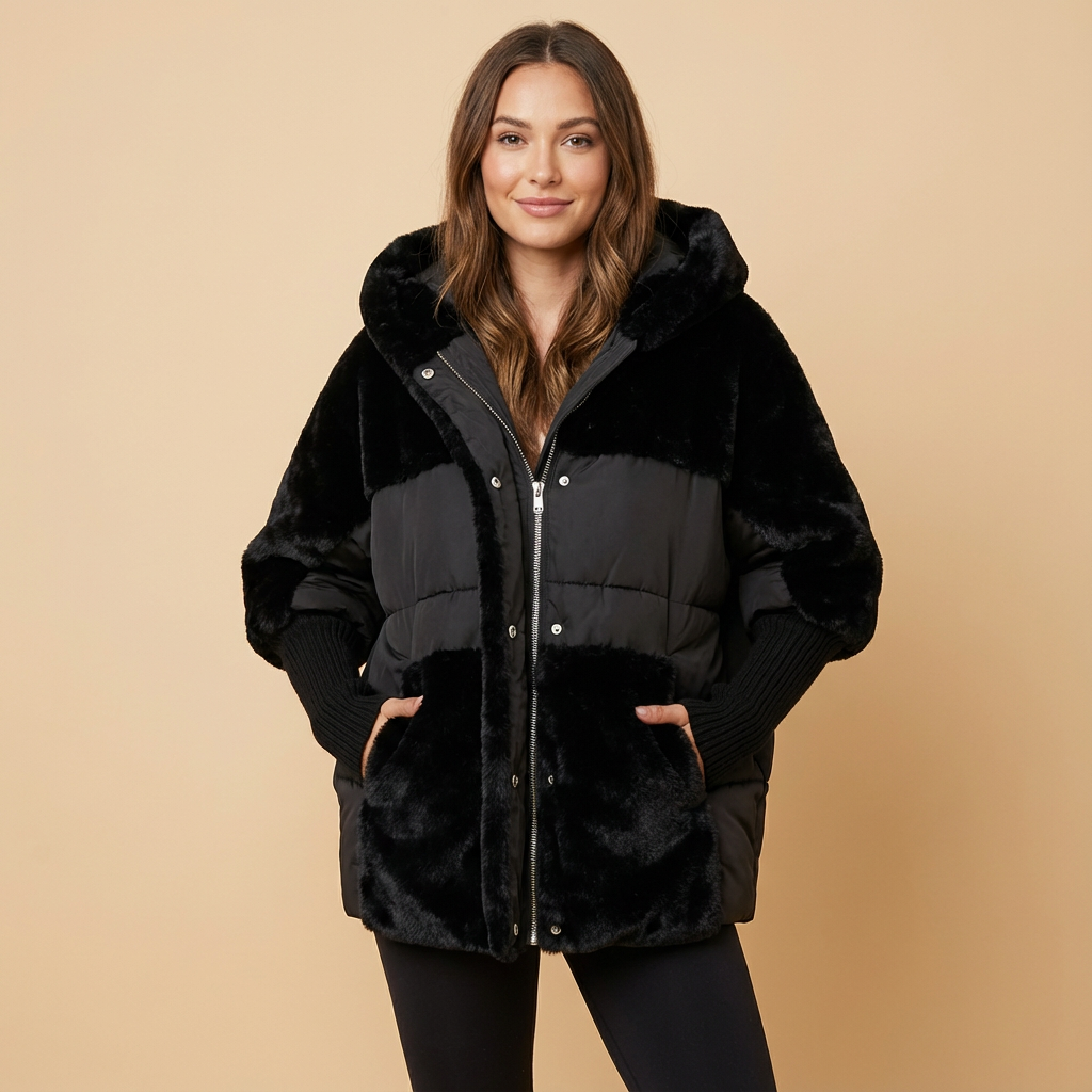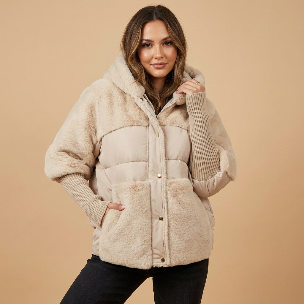 - Doudoune teddy grâce au contraste entre panneaux duveteux et lisses