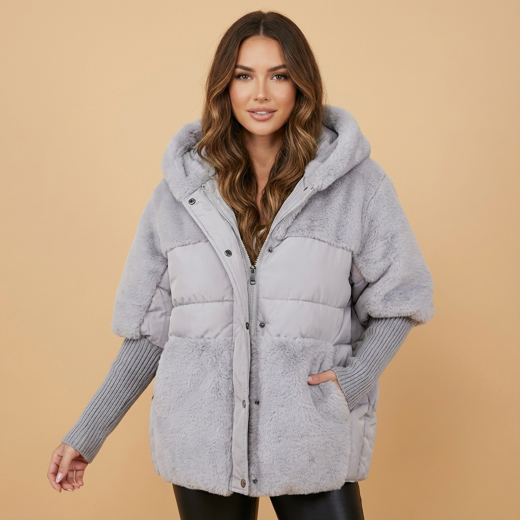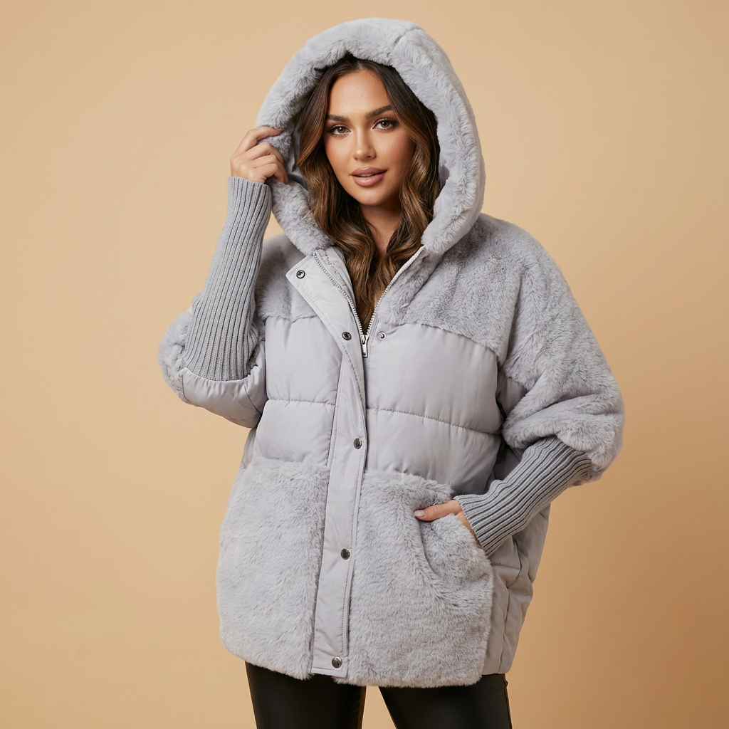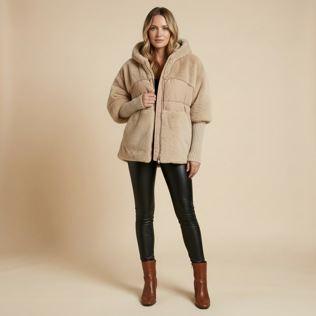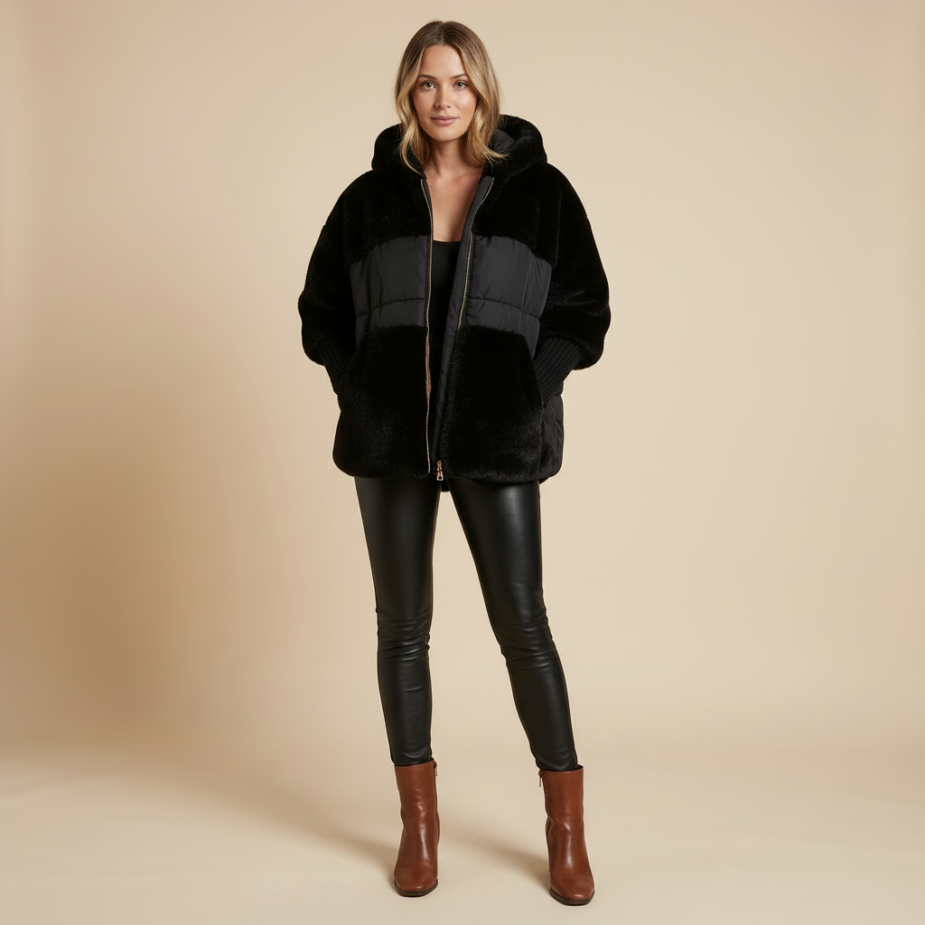 - Doudoune teddy grâce au contraste entre panneaux duveteux et lisses