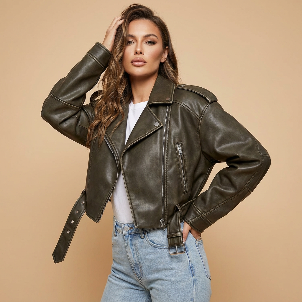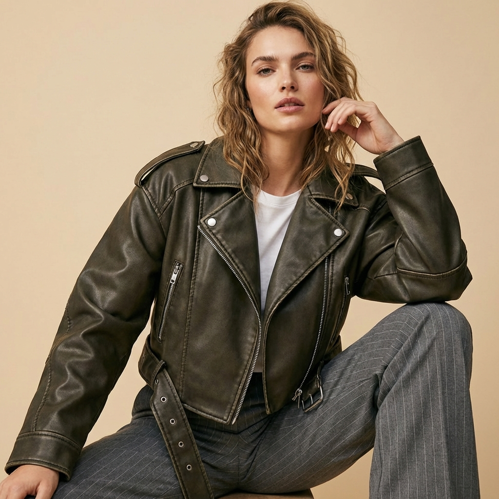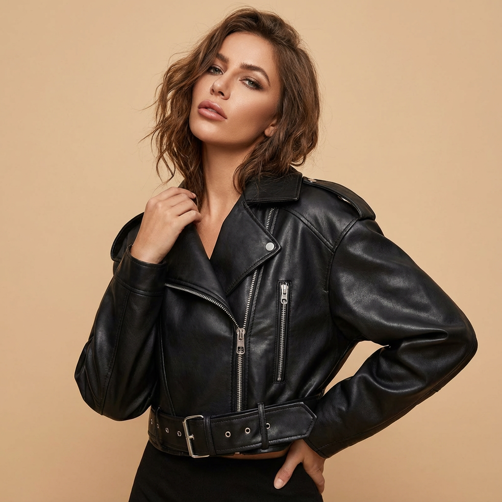 Giacca bikercon lunghezza cropped per una silhouette potente e alla moda