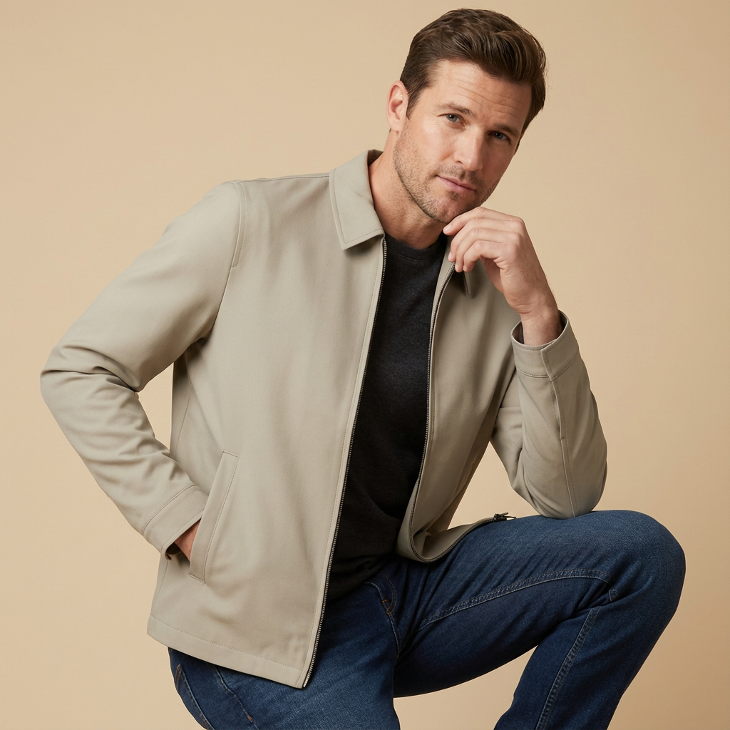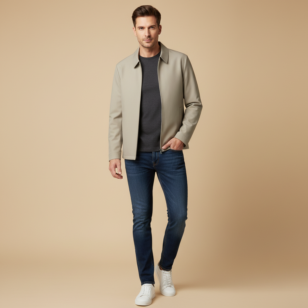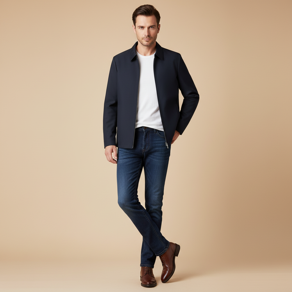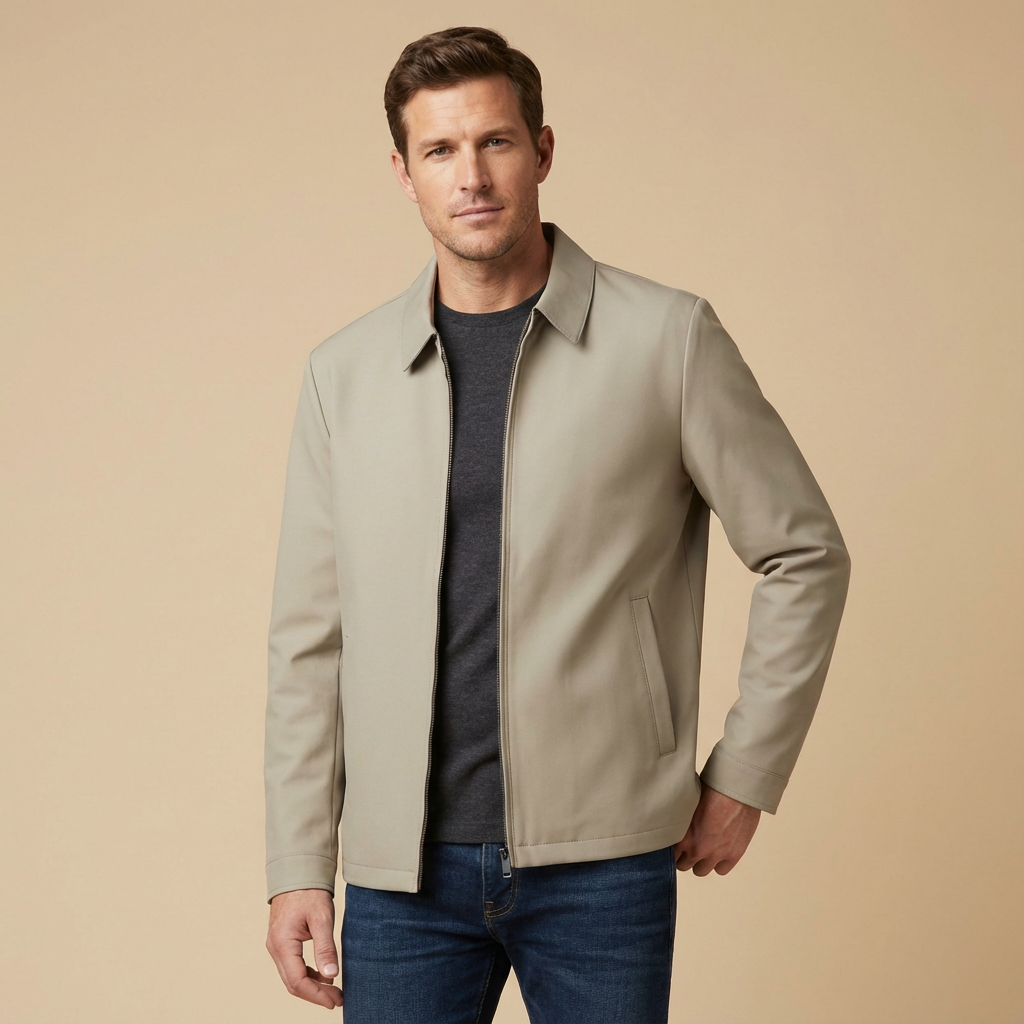 Giacca con zipe colletto classico per un design curato e minimalista