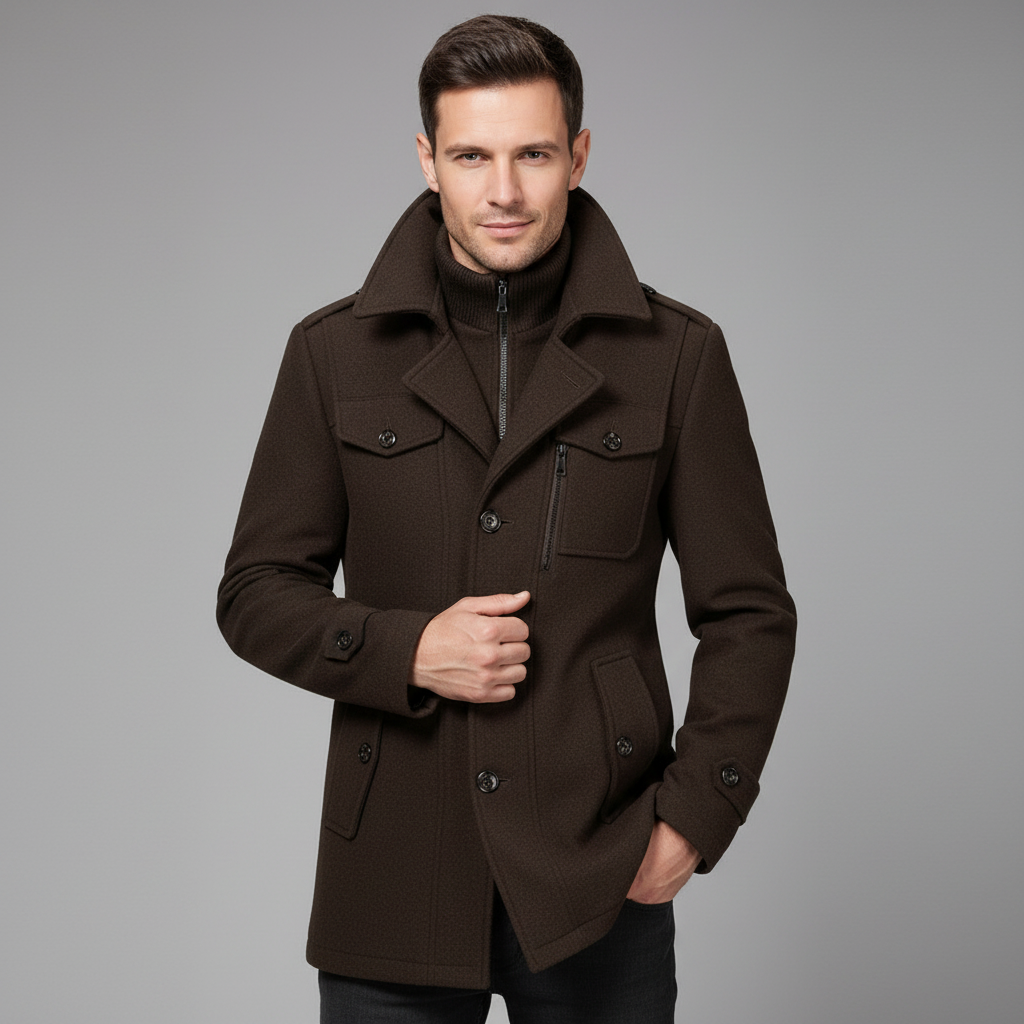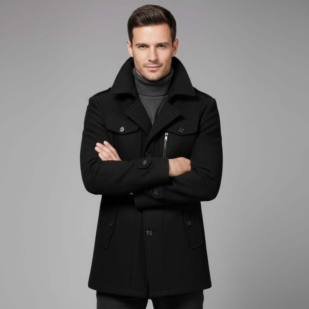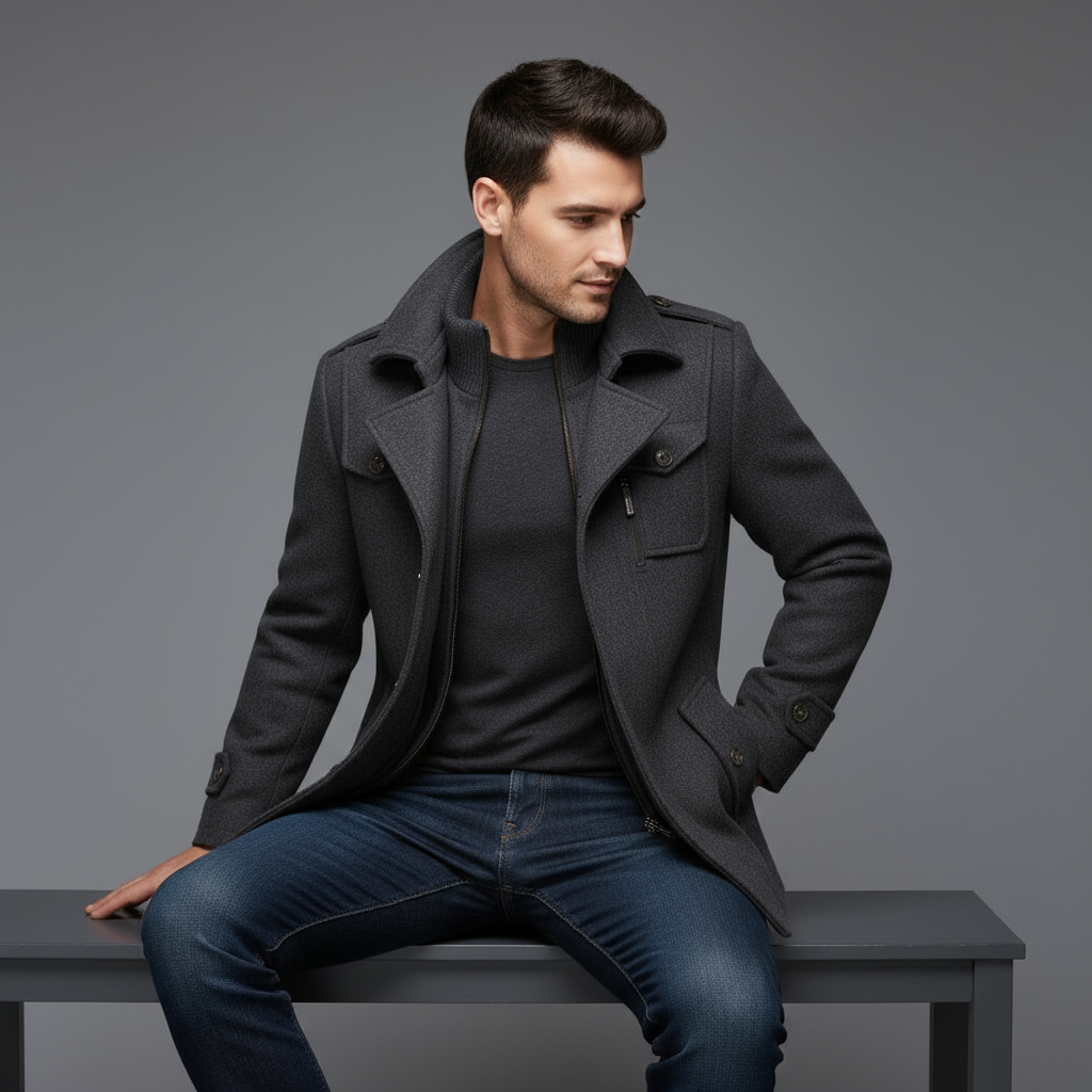 De Adrien mantel is ontworpen voor mannen die klasse en comfort willen combineren. Of je nu onderweg bent naar kantoor of een avondje uit, deze jas straalt verzorgde elegantie uit. Een onmisbaar kledingstuk binnen de collectie van de moderne gentleman — stijlvol, praktisch en moeiteloos chic.