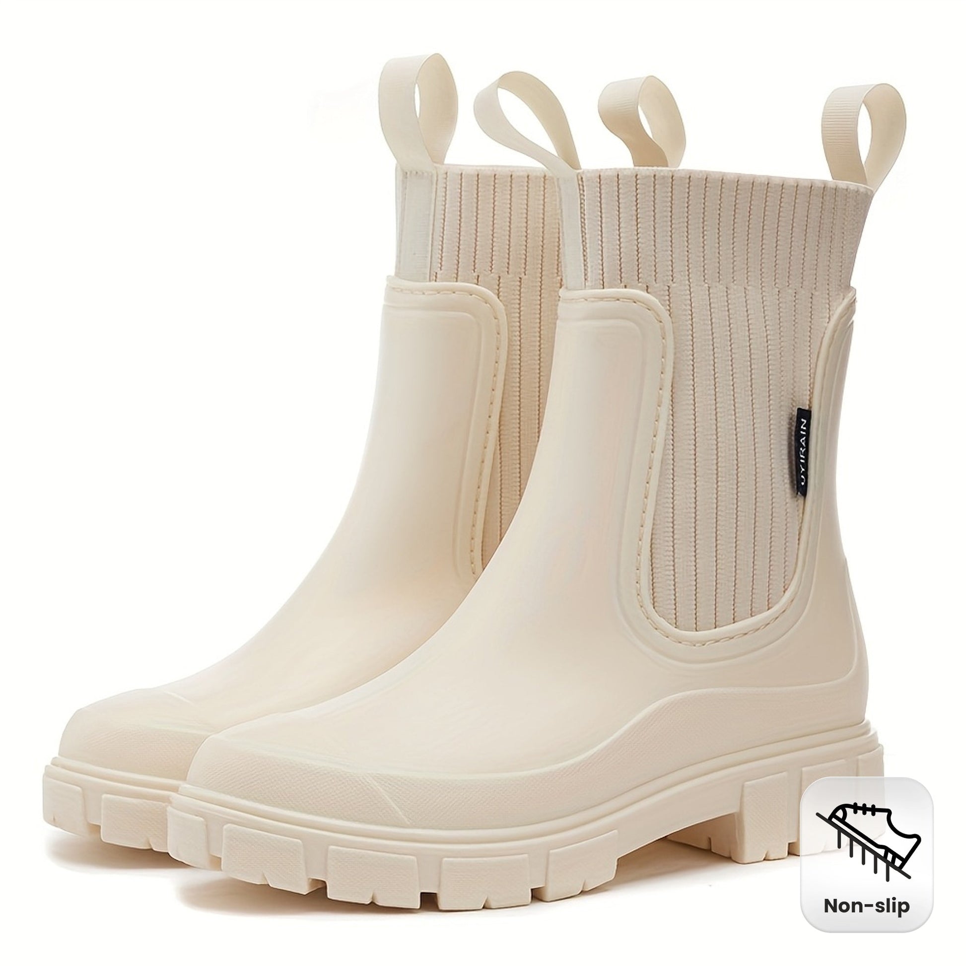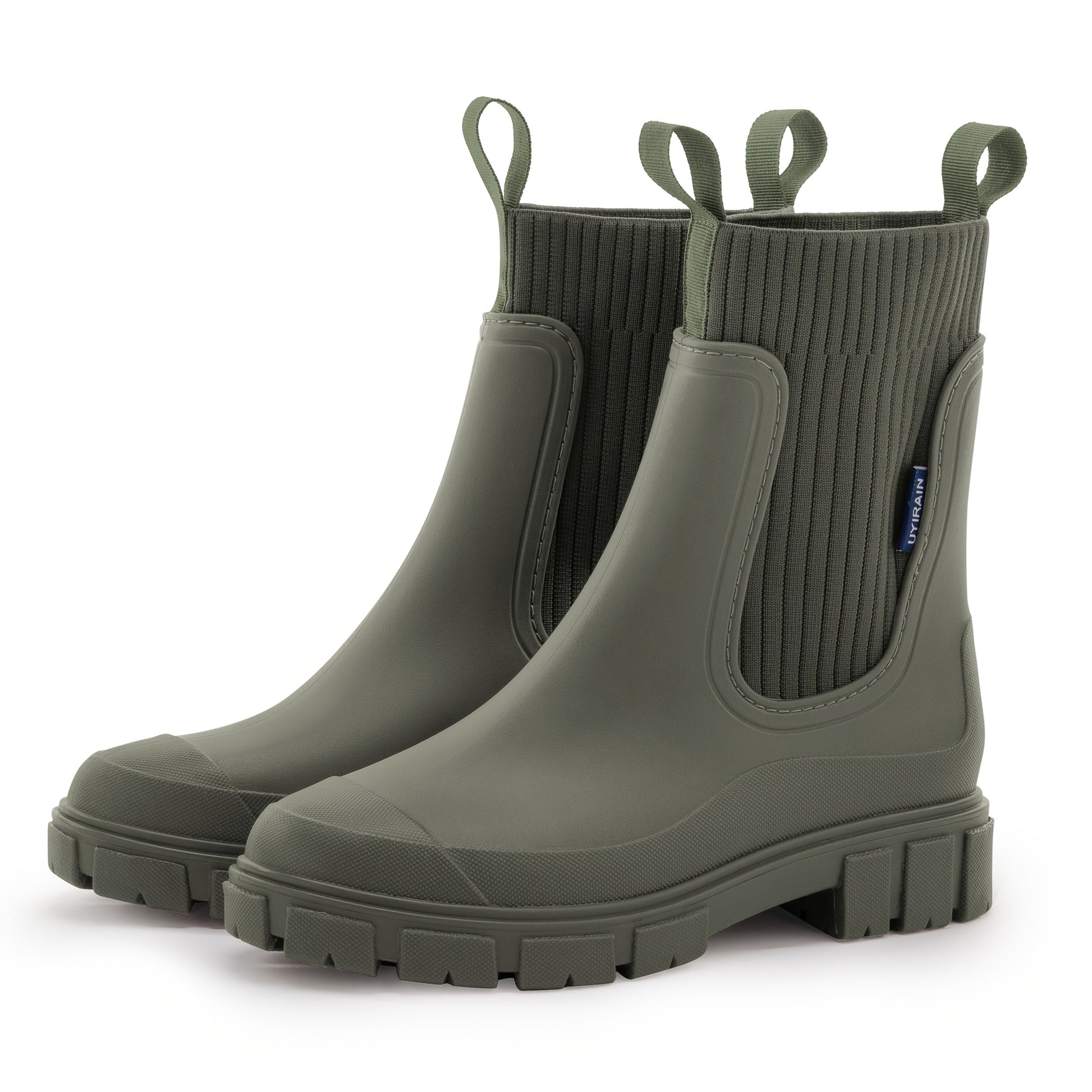 De Amira Regenlaarzen Dames Chunky combineren een waterdicht design met een trendy chunky zool. Dankzij het duurzame rubber en de ribgebreide inzet zijn ze zowel praktisch als modieus – ideaal om moeiteloos te dragen bij nat weer of als urban fashion statement.