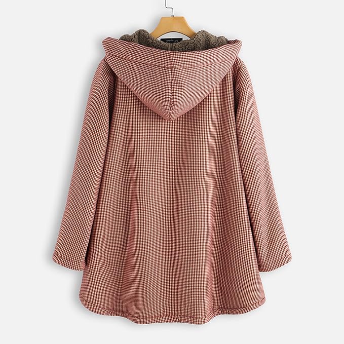 Zoek je een jas waarin je je direct warm én mooi voelt? Deze gevoerde geruite damesjas met capuchon is het antwoord op elke frisse herfstdag en gure winterwandeling. De combinatie van een rustiek geruit design, zachte teddyvoering en een comfortabele pasvorm maakt dit een must-have voor vrouwen die stijl en knusheid willen combineren.