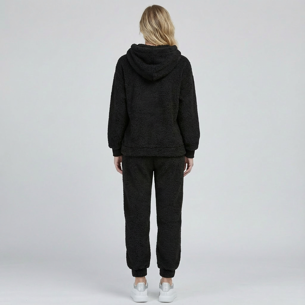 Op koude dagen wil je maar één ding: thuiskomen en je direct comfortabel voelen. Deze teddy lounge set geeft je dat geborgen gevoel vanaf het eerste moment. De zachte, pluizige stof houdt de warmte vast en voelt heerlijk aan op de huid, terwijl de relaxte pasvorm je lichaam alle ruimte geeft om te ontspannen. Perfect voor avonden op de bank, rustige weekenden en alles daartussenin.