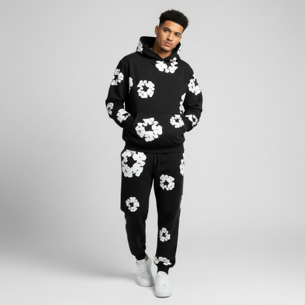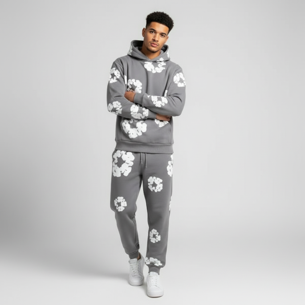 Of je nu een relaxte dag thuis hebt of een trendy streetwear look wilt creëren, dit bloemenprint trainingspak is de perfecte keuze. Verkrijgbaar in grijs, zwart en roze, zodat er altijd een kleur is die bij jouw stijl past. Comfortabel en stijlvol in één – mis het niet!
