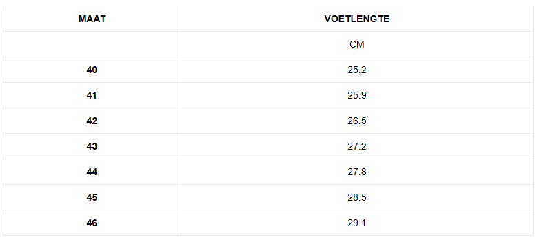 De meetwaarden zijn in centimeters weergegeven. Maak de juiste keuze aan de hand van de onderstaande tabel. Ieder kledingstuk heeft altijd toch weer een andere pasvorm!