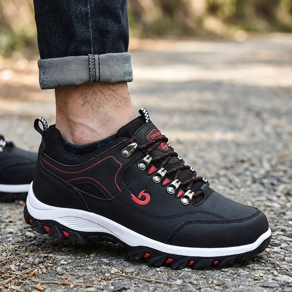 - Antislip Zolen voor Maximale Grip: Traditionele bergwandelschoenen verliezen vaak grip in natte omstandigheden, maar met de MountWalk™ hike schoenen loop je veilig dankzij hun antislip zolen. Elke stap absorbeert schokken, waardoor je comfortabel en stabiel loopt, ongeacht het terrein.