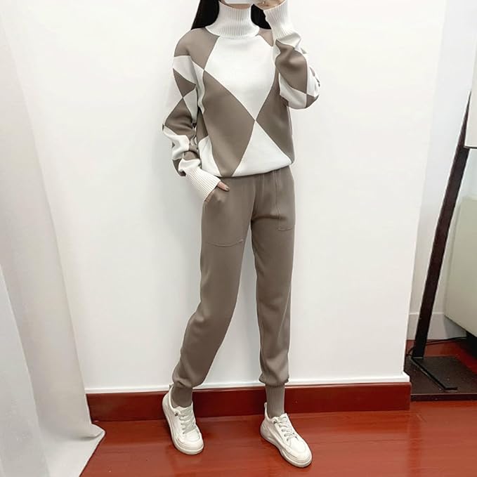 De Renelle knit set combineert elegantie en gemak in een tweedelige outfit die er net zo luxe uitziet als ze aanvoelt. De trui met hooggesloten col en klassiek ruitpatroon straalt verfijning uit, terwijl de bijpassende jogger zorgt voor een ontspannen pasvorm en ultiem draagcomfort. Perfect voor dagen waarop je stijlvol wilt ontspannen — thuis, onderweg of in de stad.