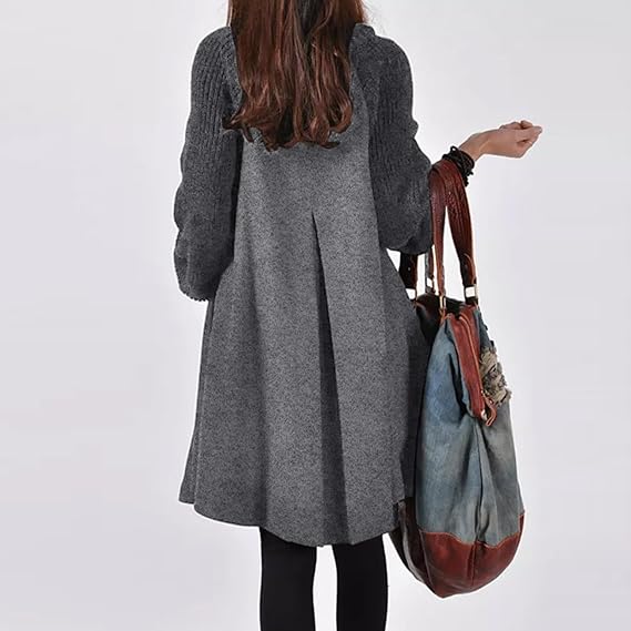 De Vivianne wolmix wintermantel combineert de verfijning van een klassieke mantel met het comfort van een warme gebreide trui. Het unieke contrast tussen het gladde wolmix lijfdeel en de zachte, geribde mouwen en kraag zorgt voor een luxueuze uitstraling én behaaglijke warmte. Deze halflange jas in tijdloos grijs is de perfecte keuze voor koude dagen waarop je stijl niet wilt opofferen aan comfort.